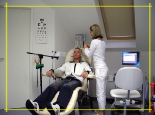 (Augen über Monitorbild = VEP, Ohren über Kopfhörer